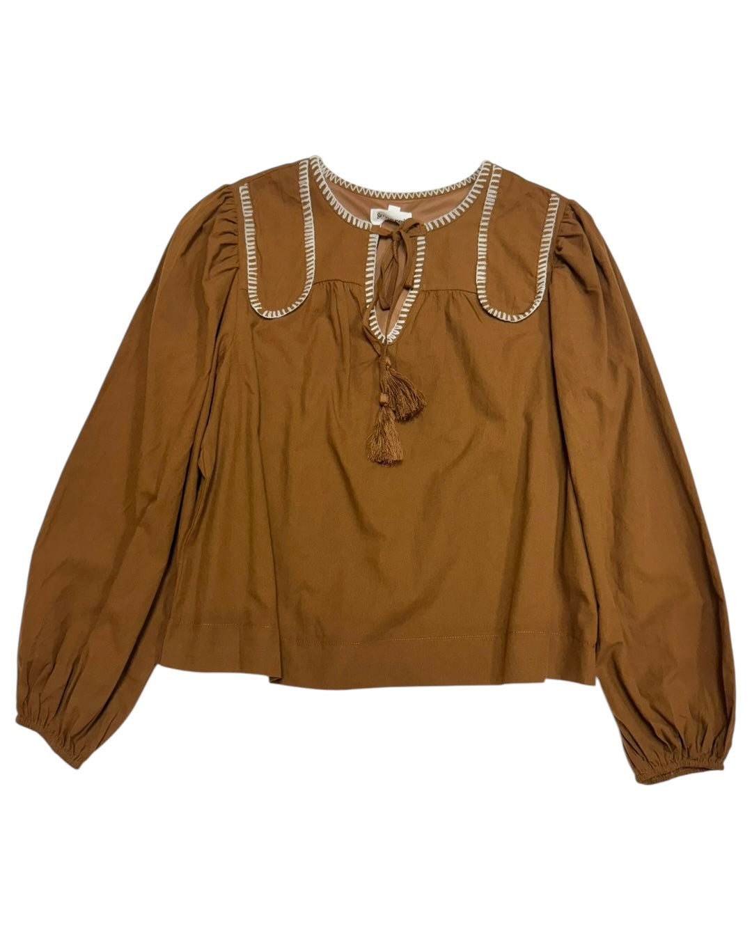 Stitch Tie Front Blouse Brown
