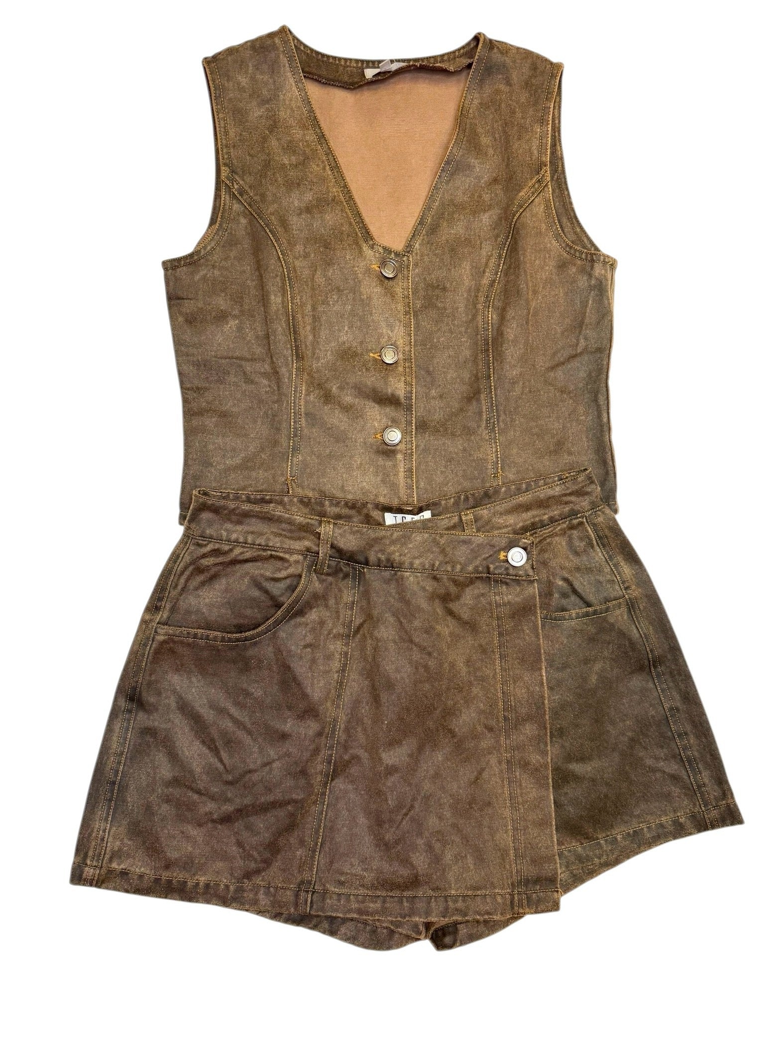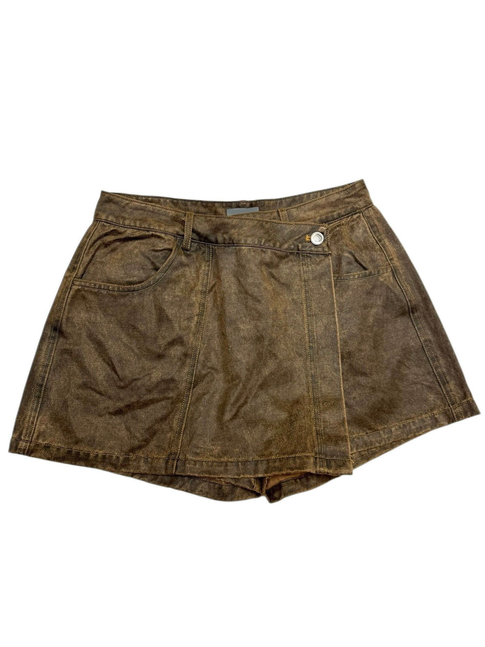 Denim Front Wrap Panel Skort Taupe