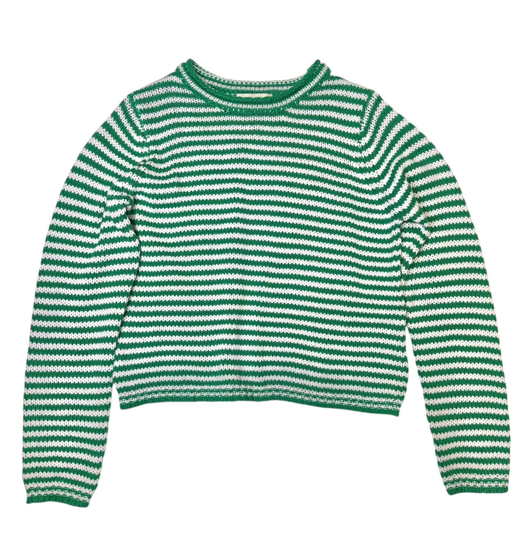 green and white stripe knit sweater.