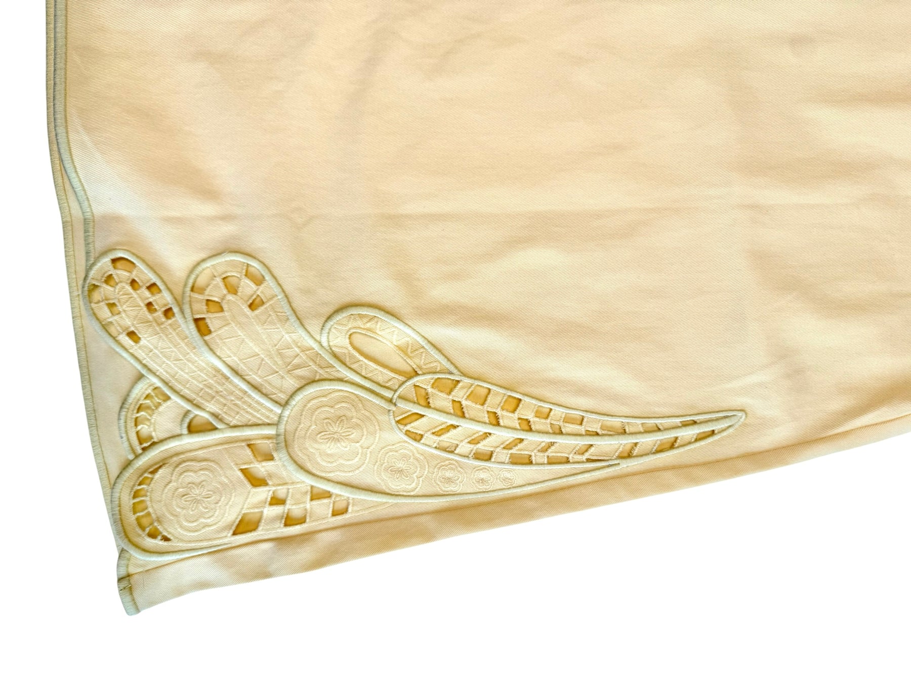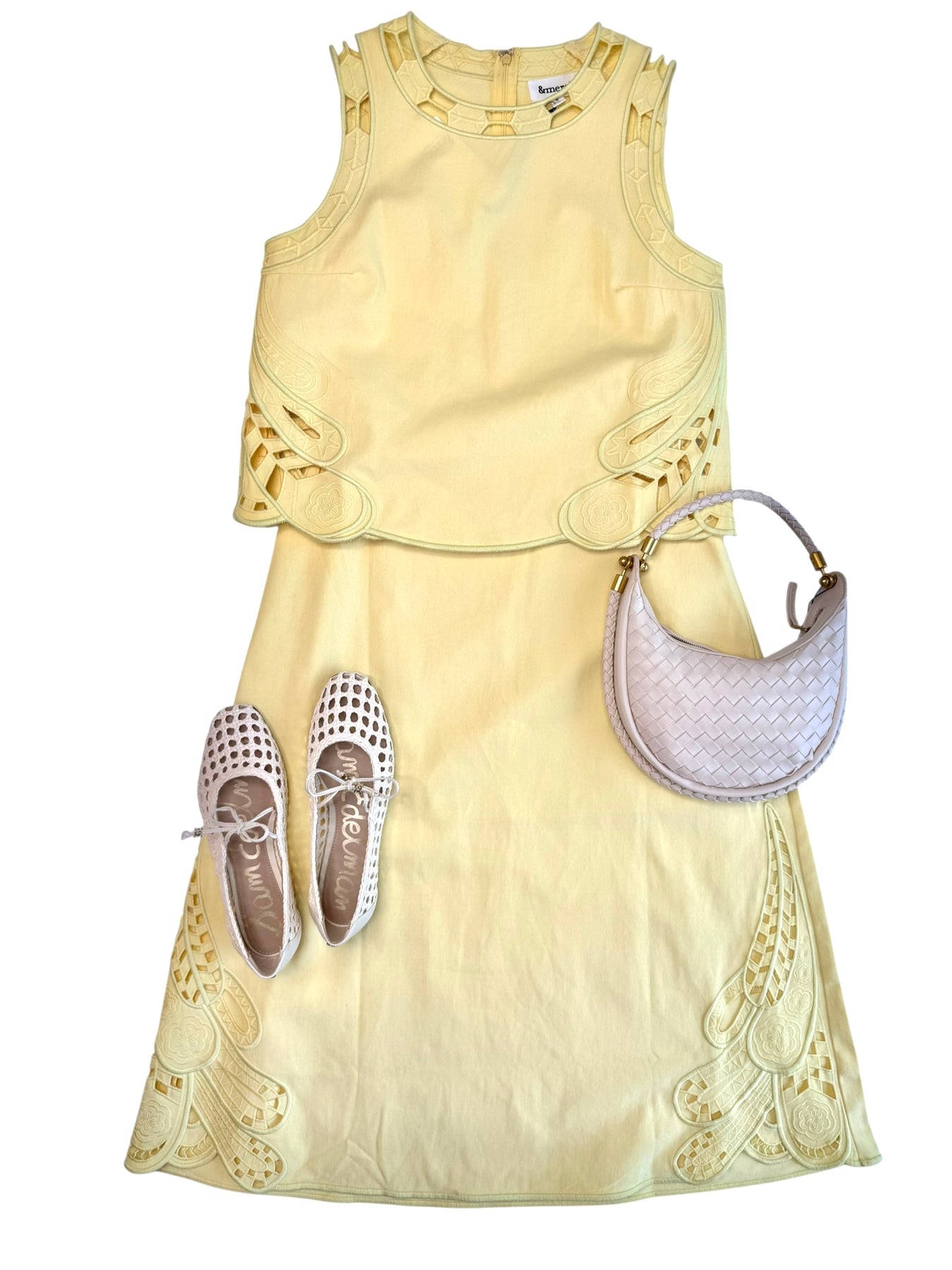 Yellow denim tank top and midi skirt, with small cut out details on side