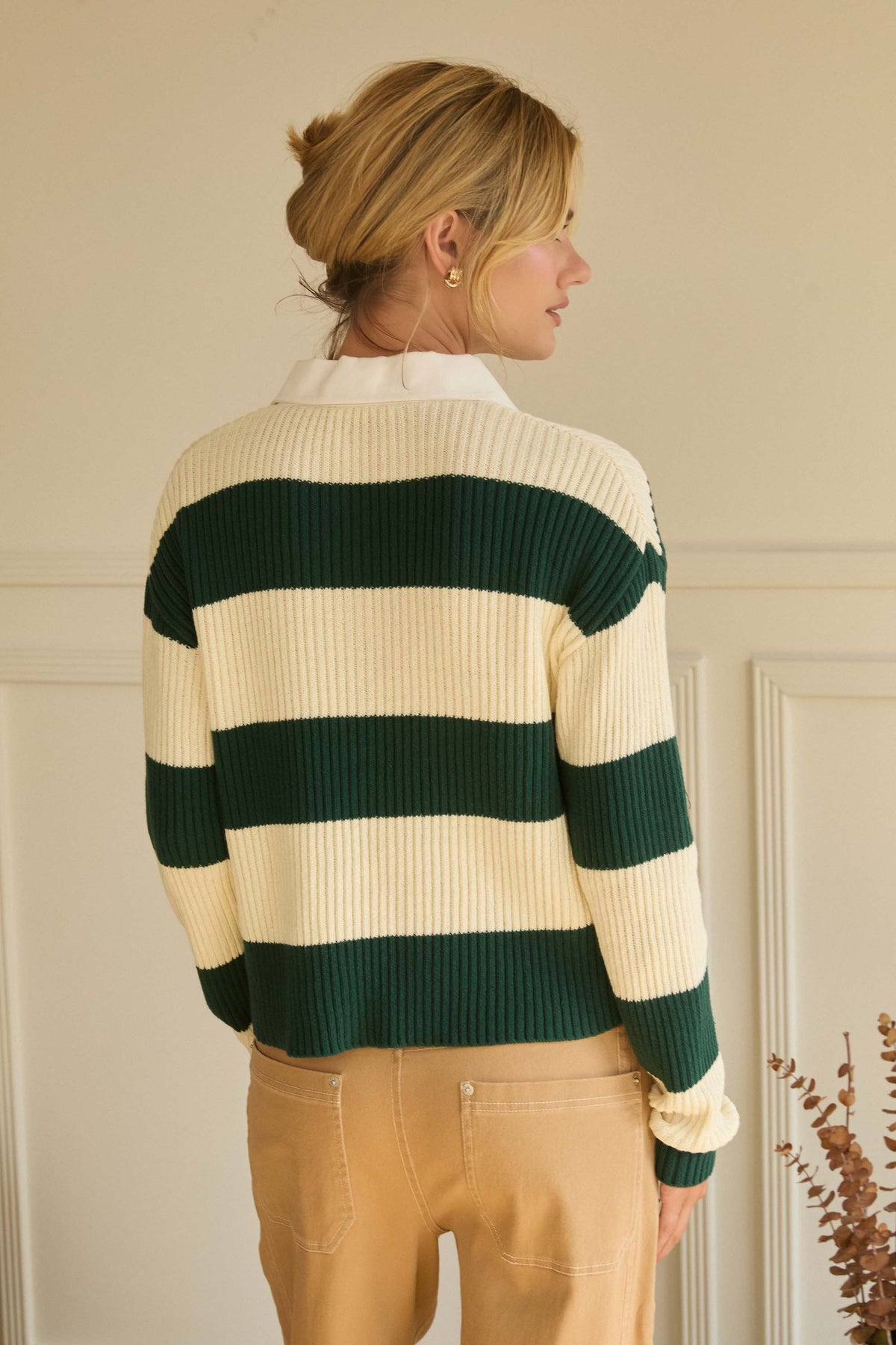 A classic yet modern take on the polo, crafted from soft ribbed knit fabric with timeless stripe detailing. Featuring a structured collar and comfortable fit, this shirt offers effortless style perfect for casual or polished looks. Also, available in-store.