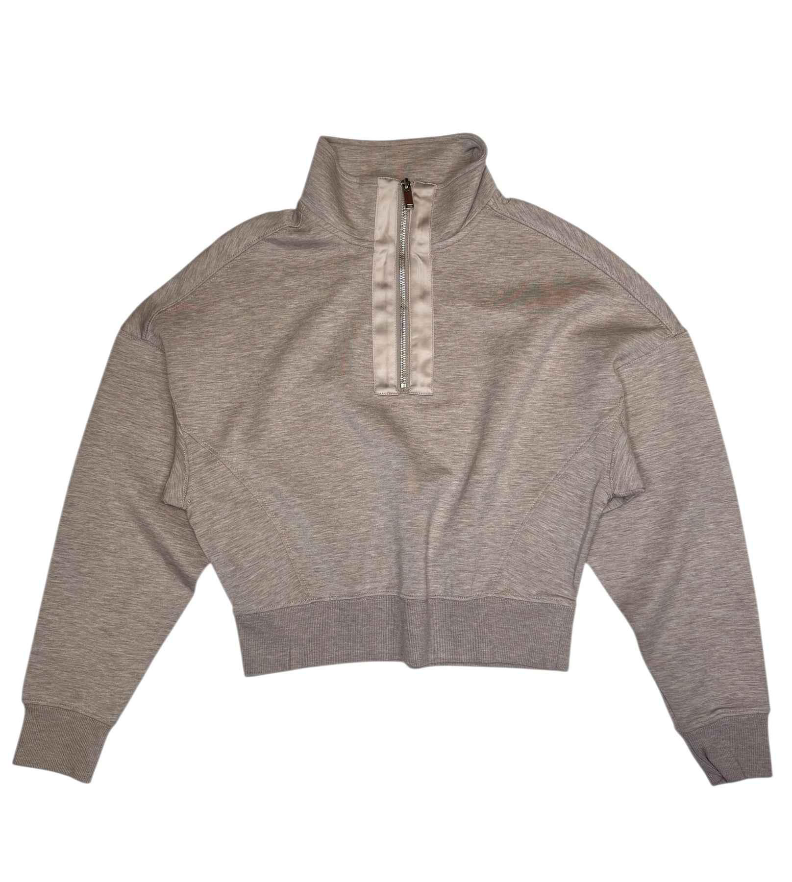 Taupe half zip pull-over. Soft, stretchy fabric. Pairs well with the Erika Pant. Also, available in-store.