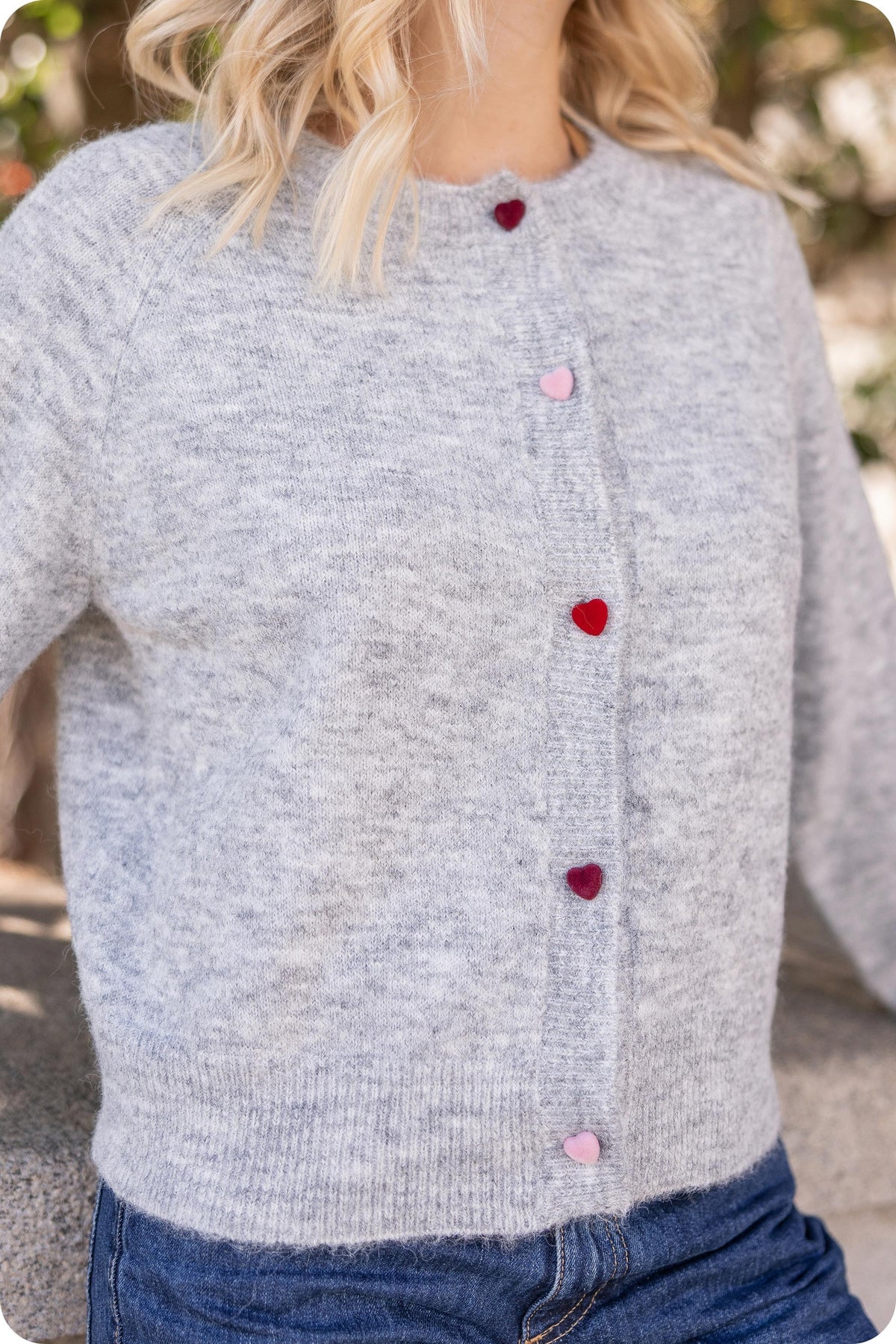 Multi Color Heart Button Sweater Heather Grey