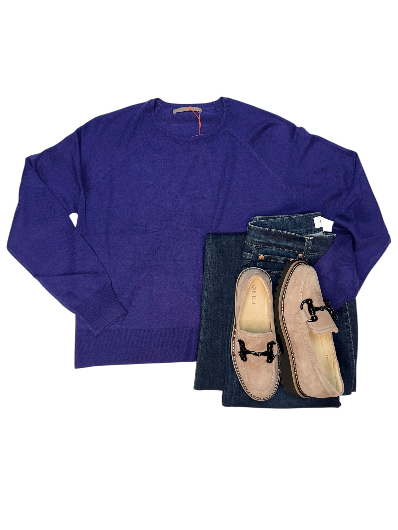 Lightweight long sleeve crewneck sweater. Available in black, white, cream, eggshell and blush. Fitting true to size. Also available in store!