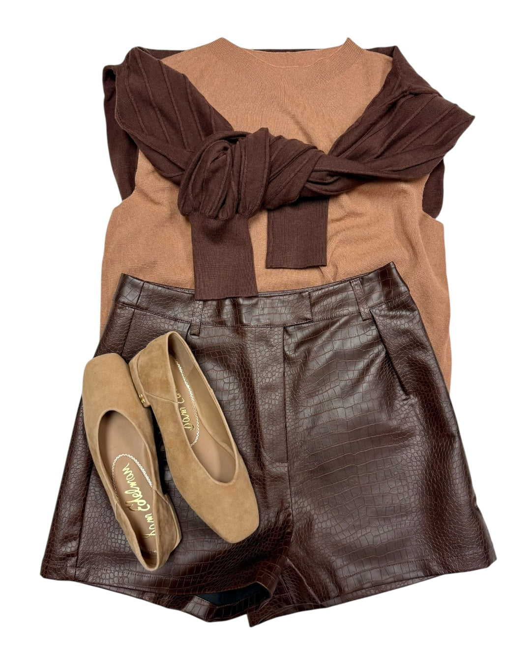 Faux leather, croc printed zip up short. Has belt loops. Fitting slightly big, size down if in between. Also available in store!