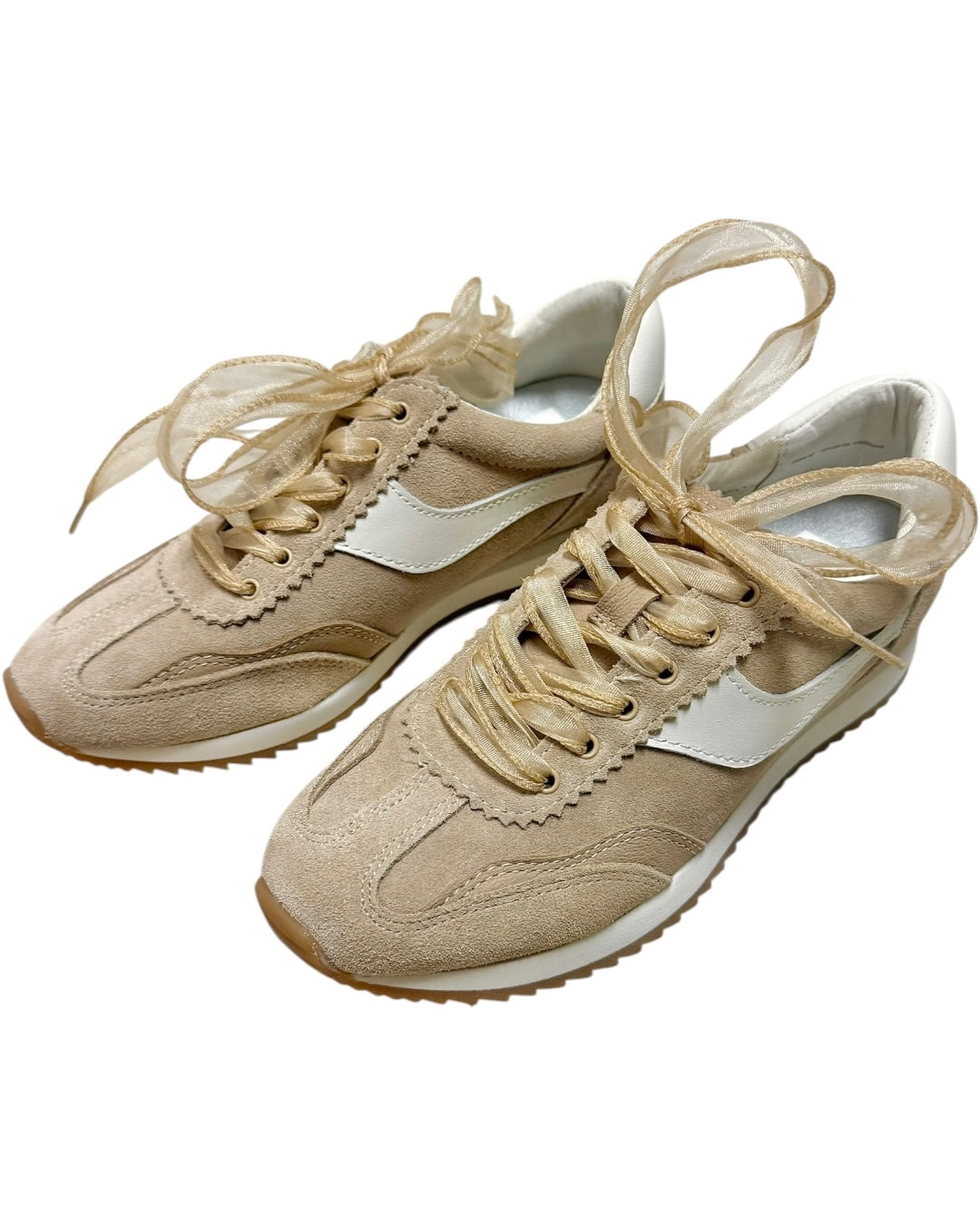 A classic sporty sneaker that goes with everything. B.NTCD’s nylon design with suede details gives this everyday sneaker an elevated look. Fitting true to size. Also available in store!