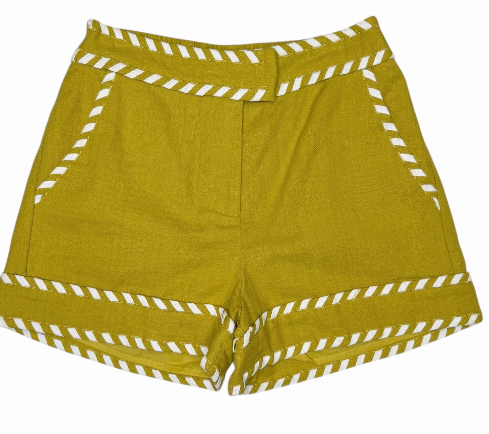 Chartruse shorts designed with contrasting white whipstich detailing. Pair with the Liliana Top or by itself! Perfect for your next weekend trip or mardi gras. Also, available in-store.