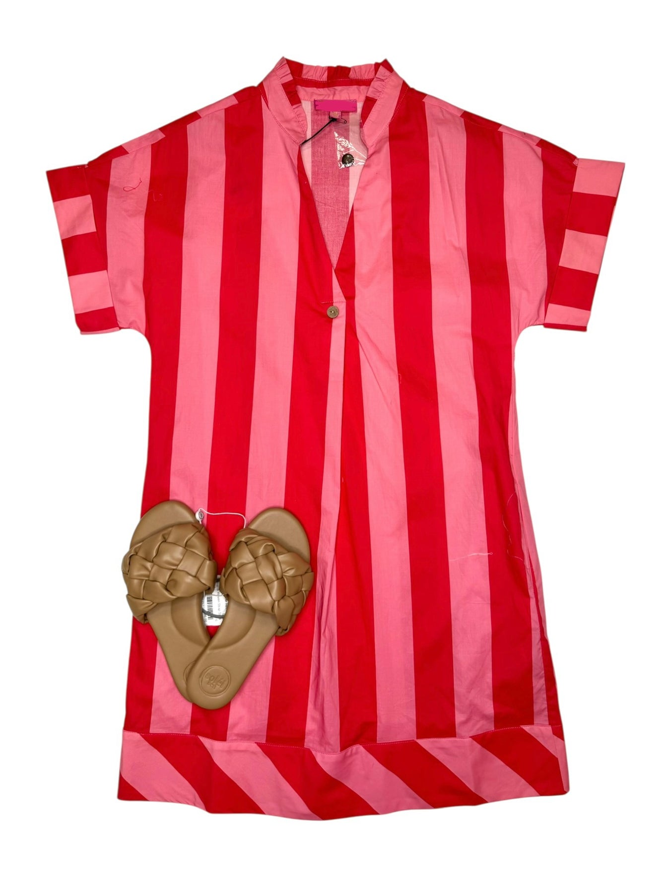 Lightweight Short Sleeve Striped V-Neck Dress
