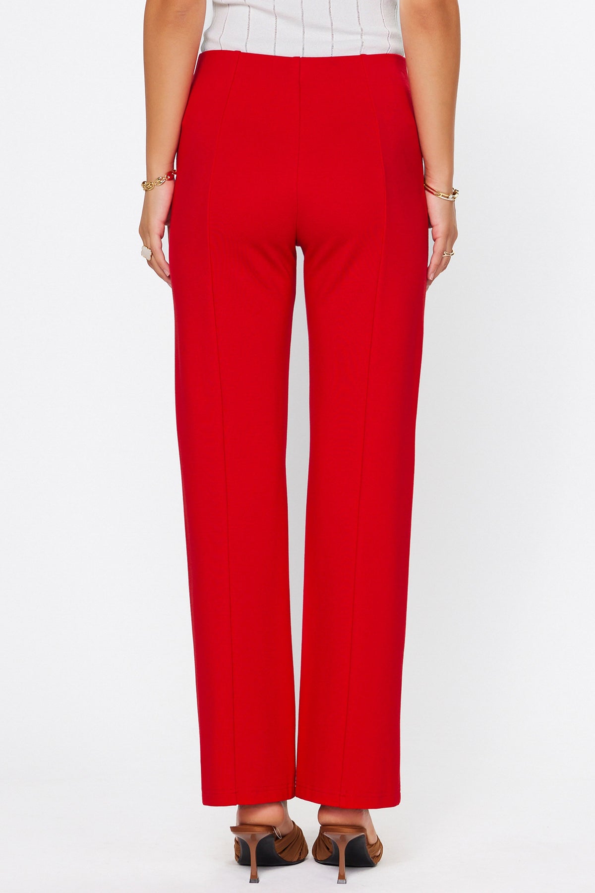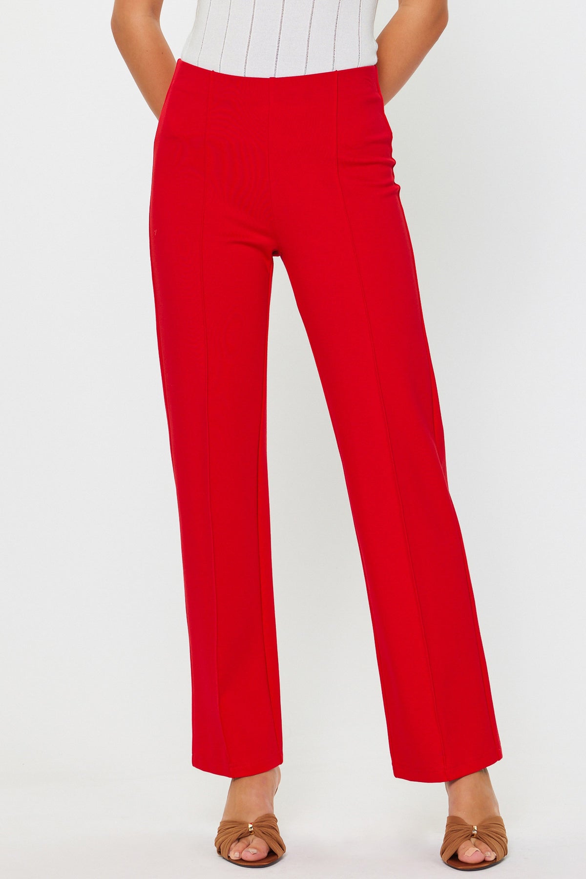 High-rise straight leg full-length casual pants with clean center seams. Pair with the Este top for a tailored, classic look. Also, available in-store.