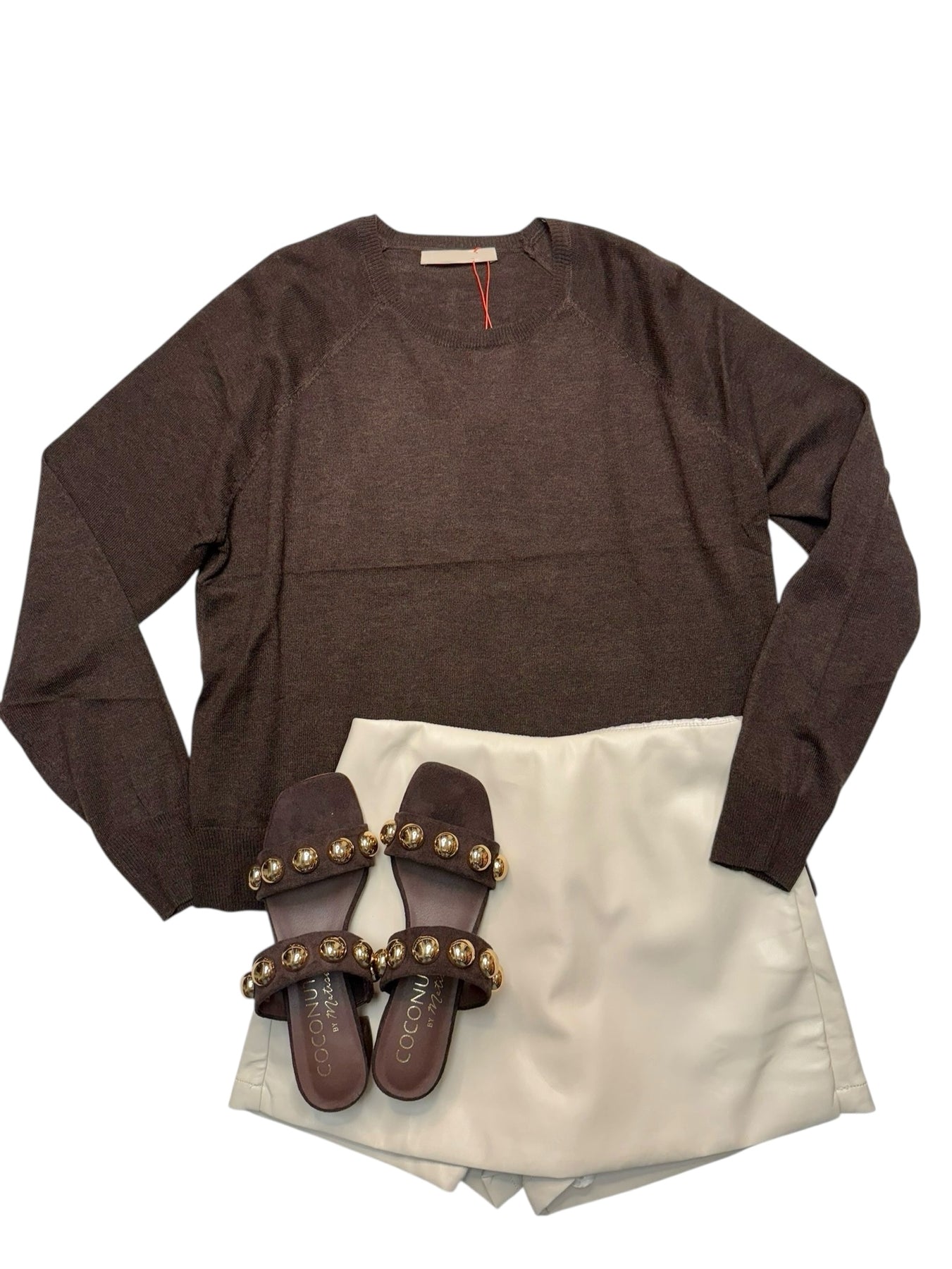 Lightweight long sleeve crewneck sweater. Available in black, white, cream, eggshell and blush. Fitting true to size. Also available in store!