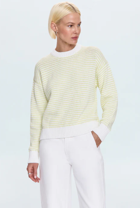 A timeless silhouette, Aura offers a classic crew neckline and an easy, relaxed fit that drapes effortlessly over denim, trousers, or skirts. Knit from 100% cotton, it’s soft yet structured—ideal for layering or wearing on its own.