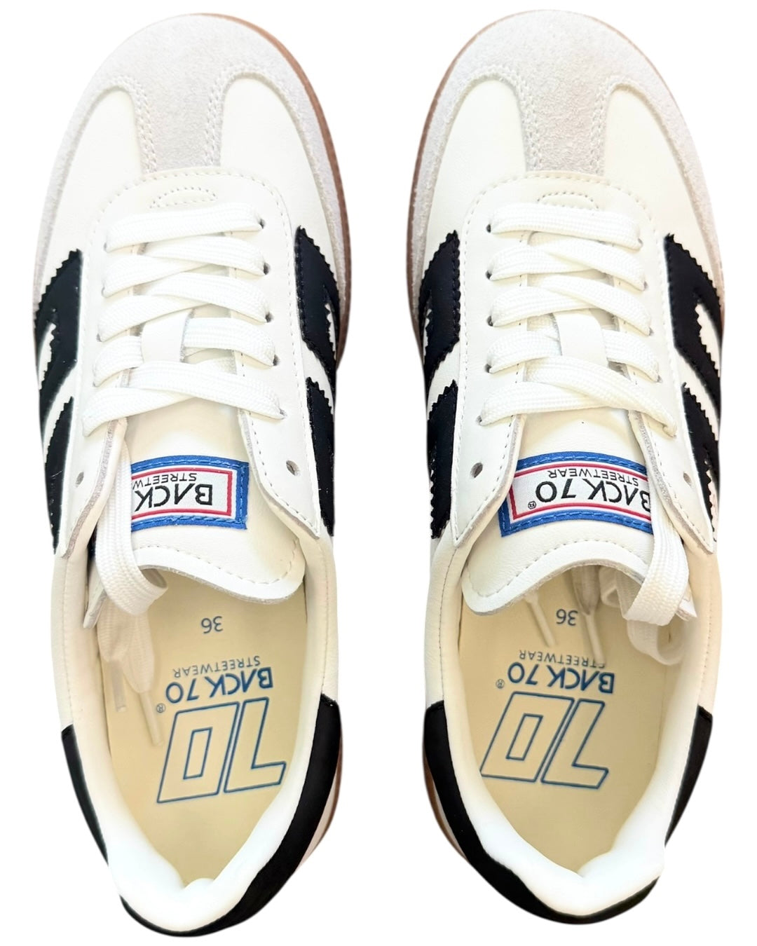 White and gold lace up sporty sneaker. Whole sizes only. Size up if in between. Also available in store!