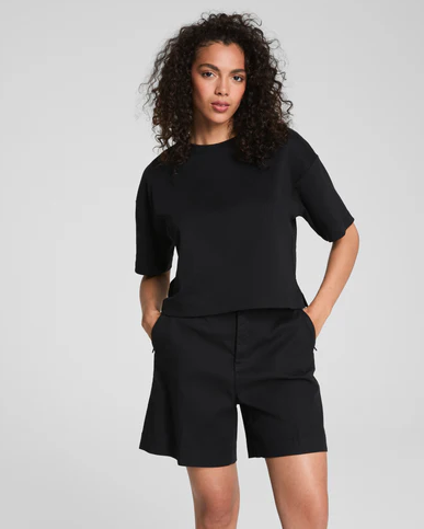 SPANX® Cotton Cropped Tee is crafted from 100% premium cotton with a proprietary finish for a cool, smooth, and slightly silky feel. With a relaxed fit and hip-length design, this crewneck shirt will be your go-to, elevated essential.