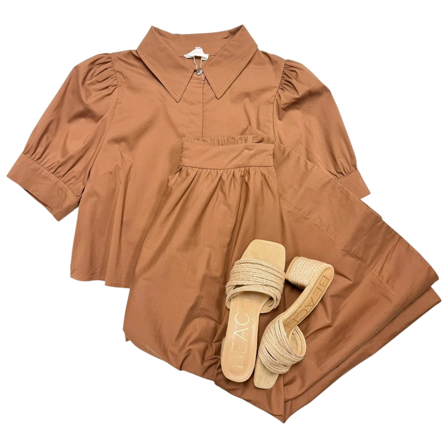 Cotton midi skirt with zipper side closure. Available in camel, evergreen and black. Pairs well with the Corley Top! Fitting true to size. Also available in store!