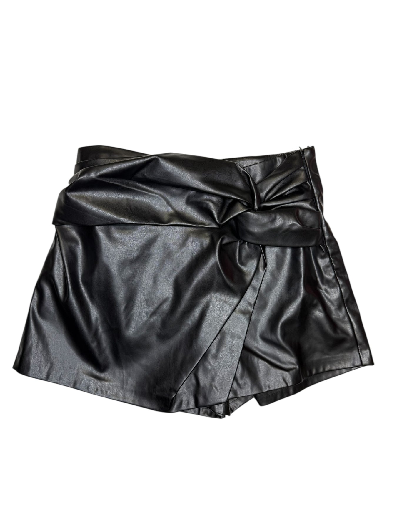 Faux leather skort with back zipper closure, and side knot design for a fun twist on a clasic piece. Also, available in-store.