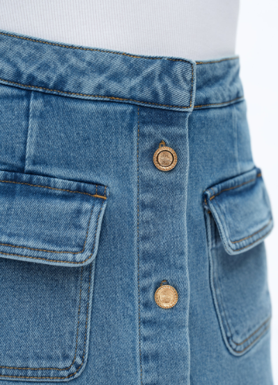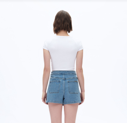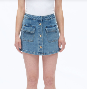 A modern take on a throwback favorite—this light wash denim skort has the look of a mini skirt with the comfort of built-in shorts. Featuring statement patch pockets and front button detailing, it's an effortlessly cool piece you’ll reach for all season long.